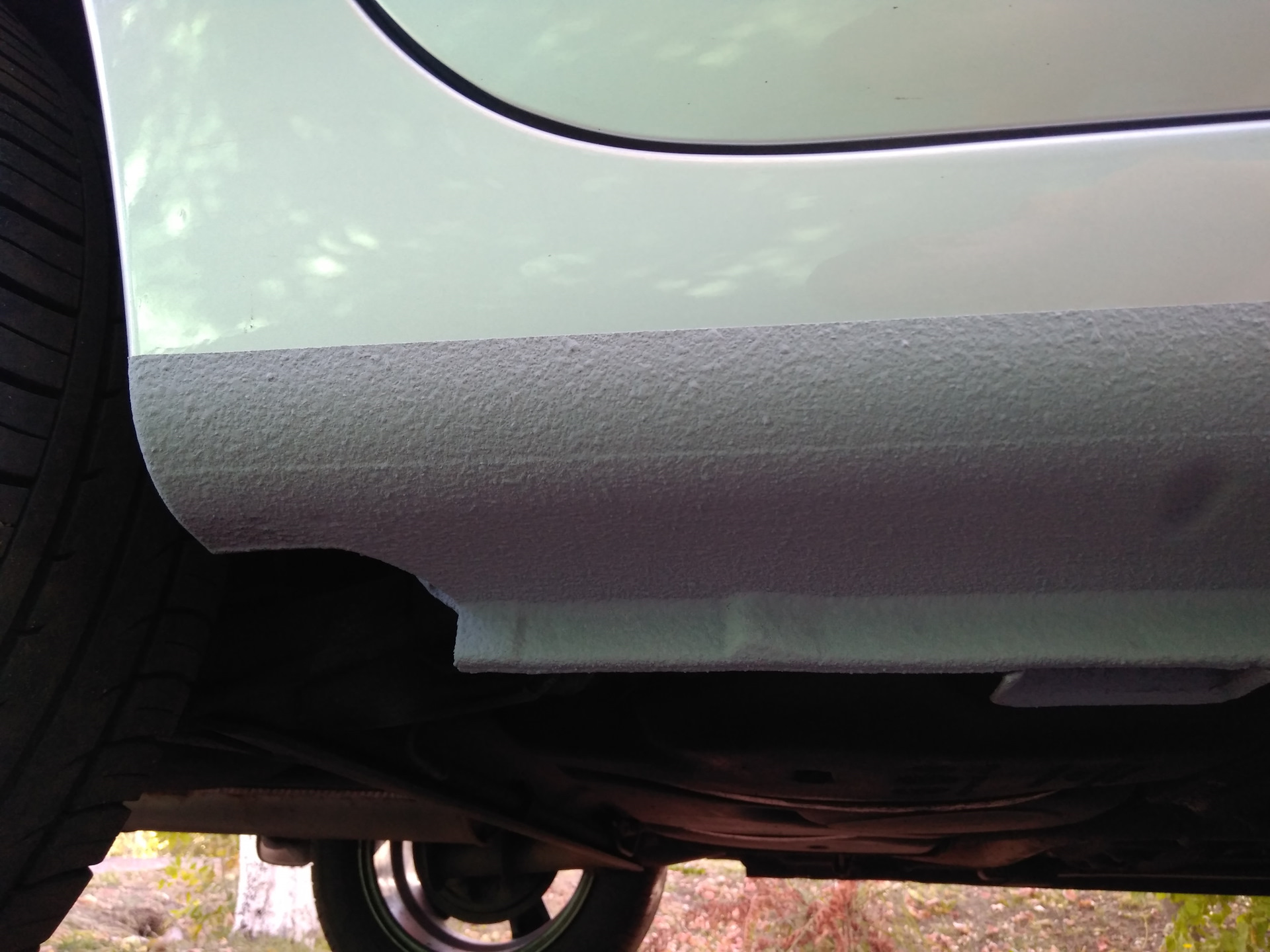 - Защита соседних участков. Перед нанесением антигравия обязательно закройте соседние элементы кузова малярным скотчем, чтобы избежать попадания средства на ненужные участки.